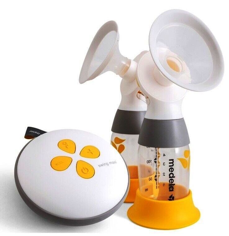 Wir bieten 2 Geräte vom Modell "Elektrische Doppel-Milchpumpe Swing Maxi + Doppelpumpset Hands-free" von der Firma Medela® an.